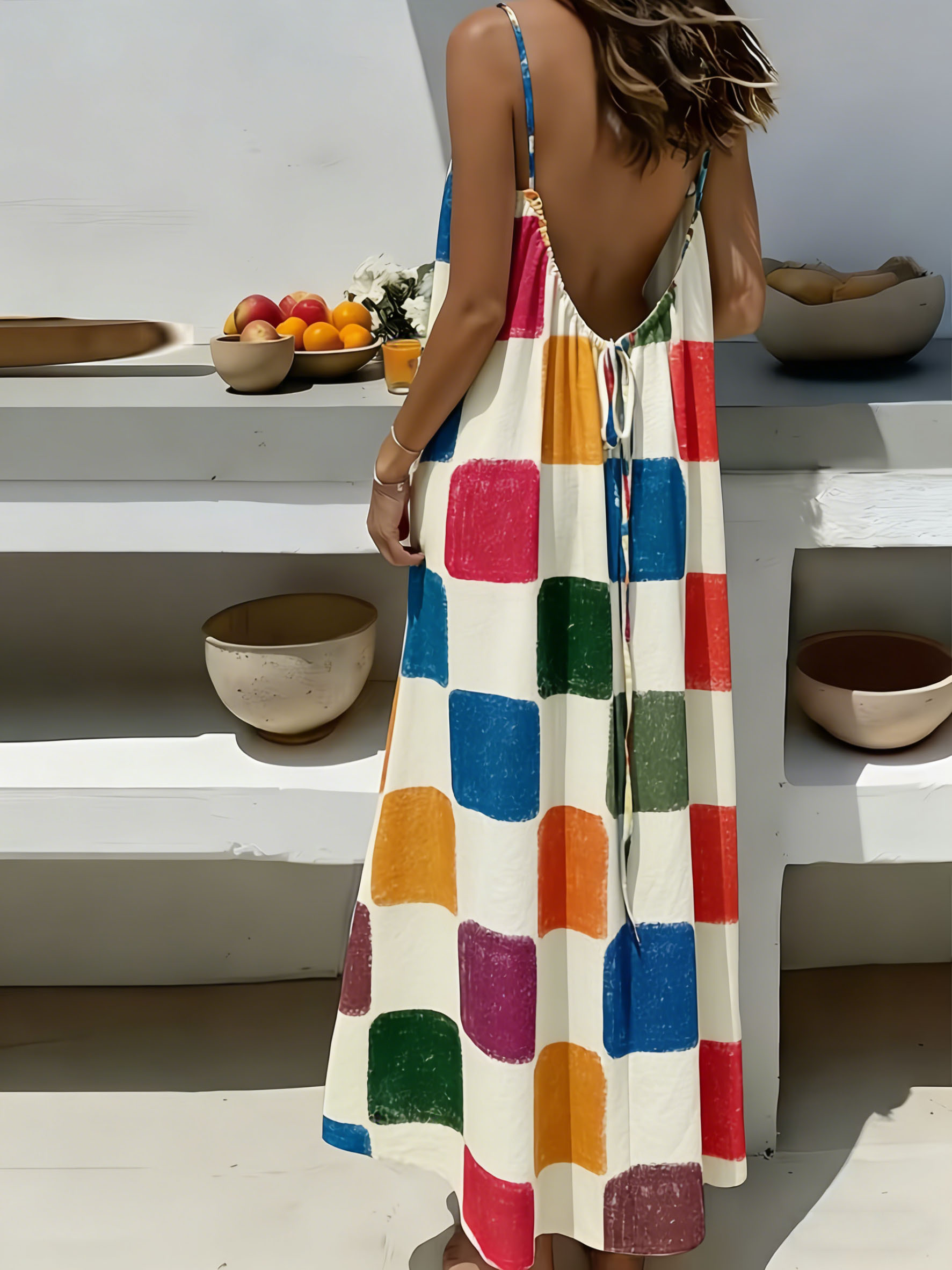 Women’s Plaid Print Spaghetti Strap Maxi Dress-0205