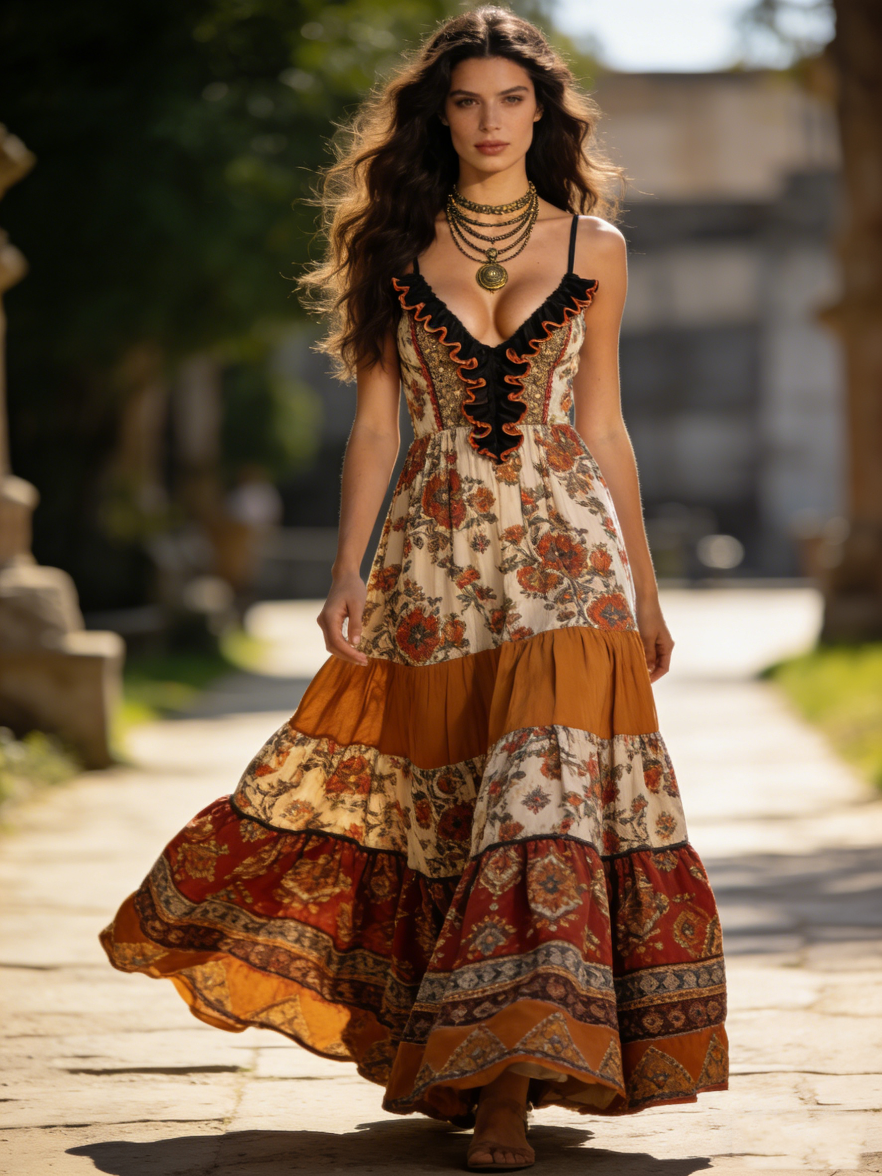 Women's Bohemian Print Spaghetti Strap Long Dress-0225